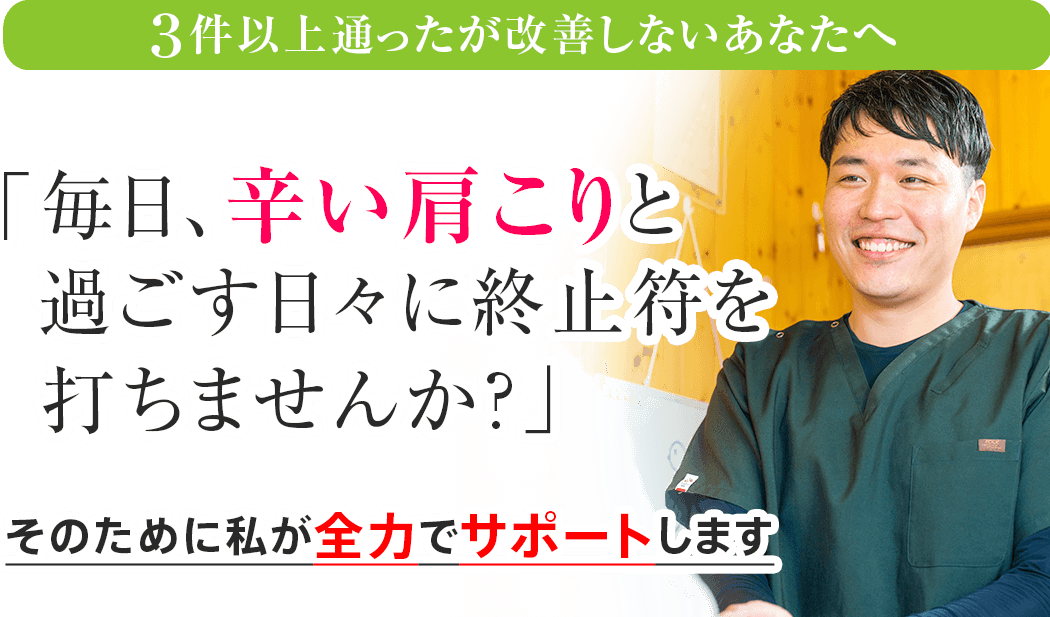 あなたの辛い肩こり を改善させるためにも、まずは勇気を出して通院してみてください。